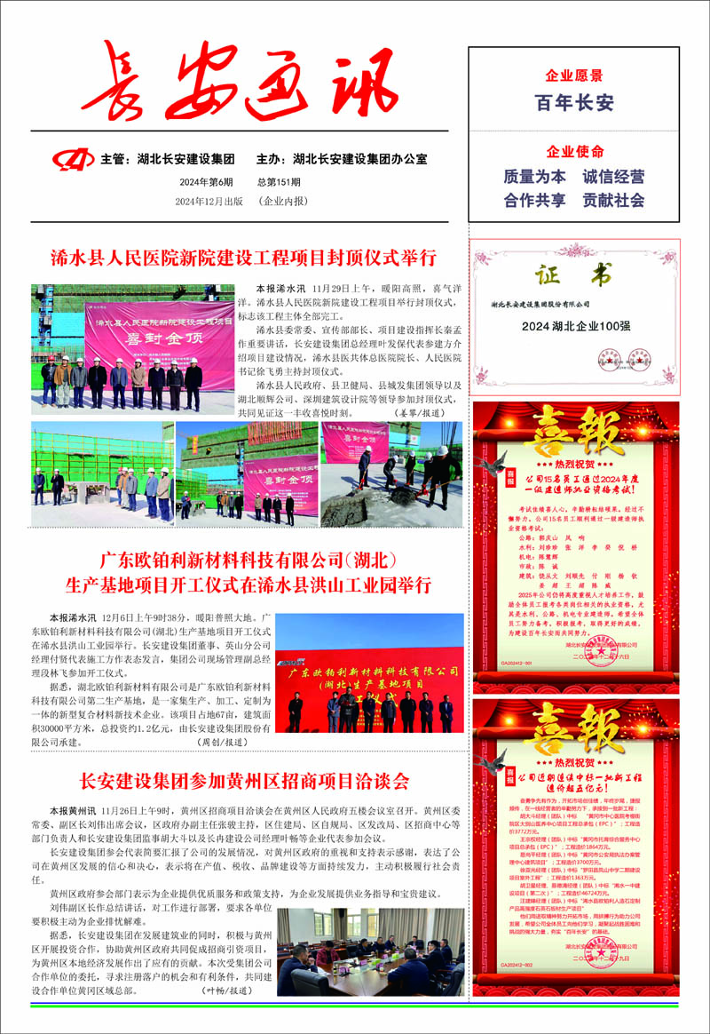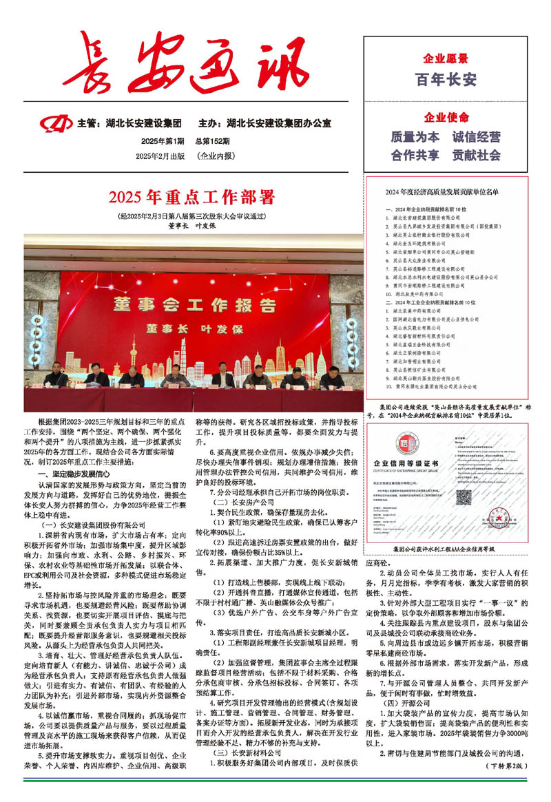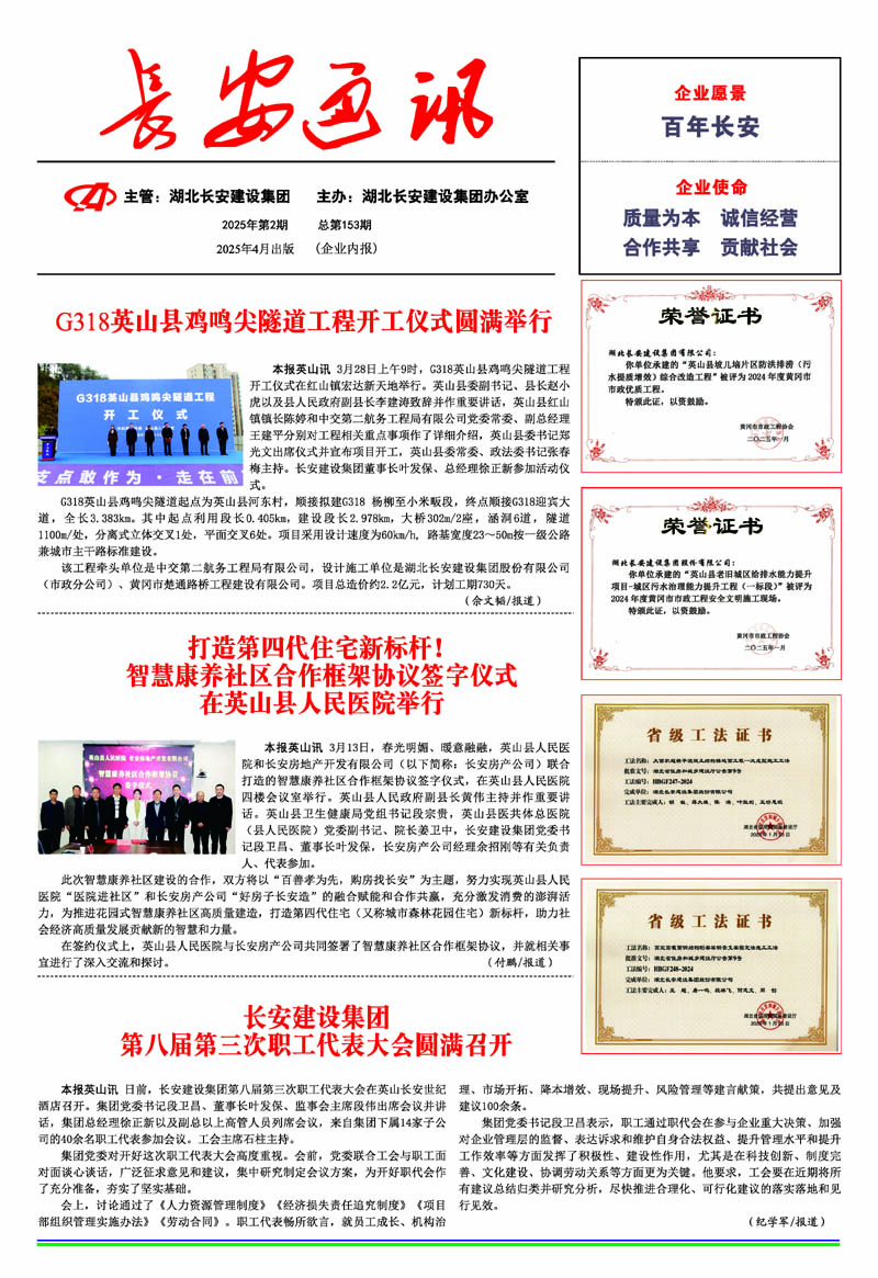 • 2025-11-03 長安建設集團聘任徐正新同志為湖北長安建設集團股份有限公司總經(jīng)理、余招剛同志為英山縣長安房地產(chǎn)開發(fā)有限公司總經(jīng)理