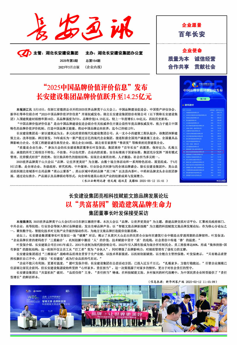 • 2025-05-13 湖北長安建設集團亮相科技賦能文旅品牌發(fā)展論壇: 以“共富基因”鍛造建筑品牌生命力